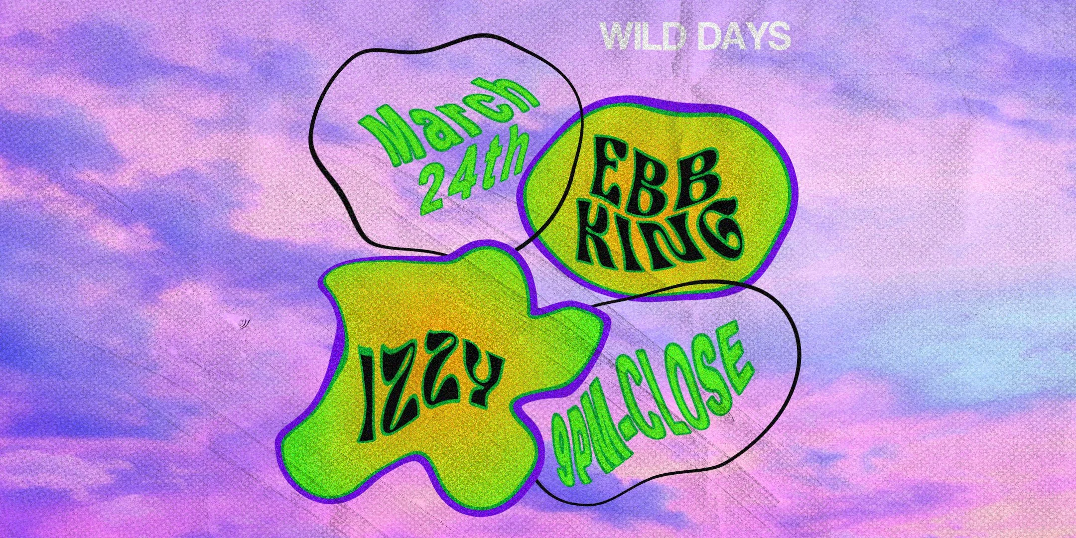 Ebb King + Izzy Friday, March 24, 2023 9:00 PM 21:00 Saturday, March 25, 2023 2:00 AM 02:00 Wild Days 1201 K Street Northwest Washington, DC, 20005 United States (map) Google Calendar ICS